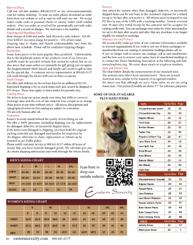 Call our toll-free number 800.641.0137 or see www.easternserenity. Any return for reasons other than damaged, defective, or incorrectly